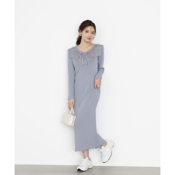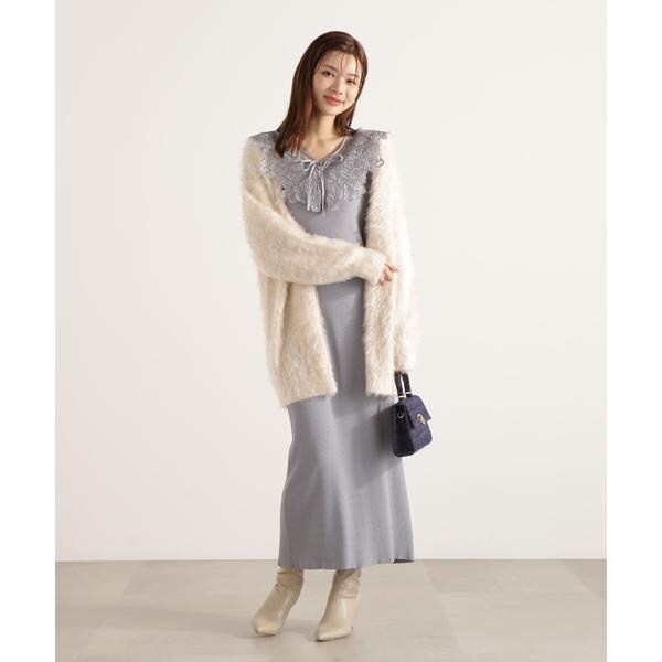プロポーション ボディドレッシング(PROPORTION BODY DRESSING)/ケープ風レース付きニットワンピース 25AW