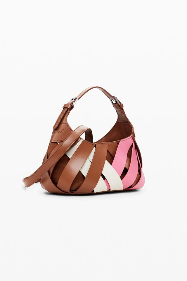 デシグアル(Desigual)/2WAY レザー調の編み込みミディアムバッグ