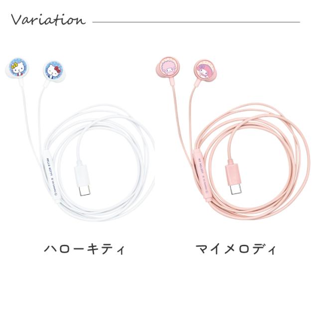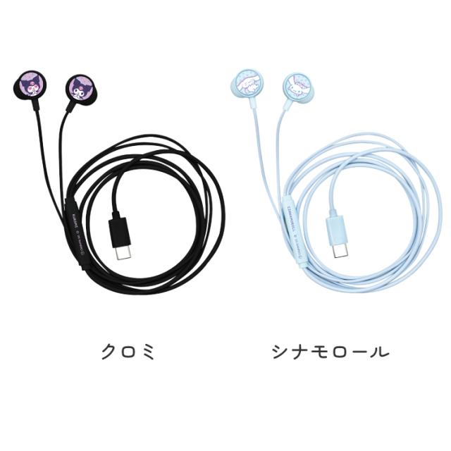 サンリオ イヤホン 有線 ハローキティ マイメロディ クロミ シナモロール type-C キャラクター グッズ カナルタイプ ステレオ マイク リモコン スマホ 音楽 通話 USB typeC