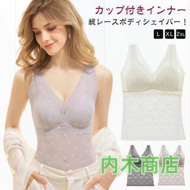 | L-2XL!総レースボディシェイパー!カップ付きインナー バストアップ・くびれメイク・おなか押さえ機能つきで、着るだけでスタイルUPが叶います。 レースをあしらったデザインで華やかな印象です。 | |