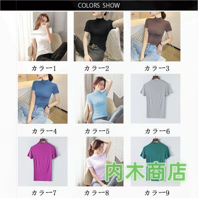デート 大人 半袖 オフィス トップス シンプル カジュアル ミディアム丈 ゆったり 大学生 夏 旅行 お洒落 コーデ 薄手 ハイネック 女性用 カットソー レディース 送料無料 上品