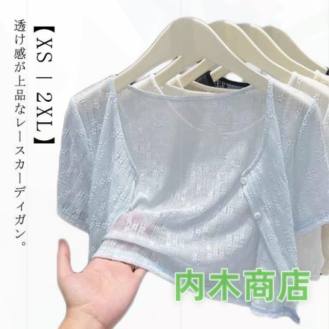| 透け感が上品なレースカーディガン。【XS?2XL】 レース素材で女性らしい印象に ショート丈でスタイルアップ効果も◎ 細い糸で編むことでより涼しげな印象に仕上げました。 チクチク感も気になりにくく、柔らかいサラッとした肌触りです。 綺麗めからカジュアルまで幅広いスタイリングにマッチします。 | |