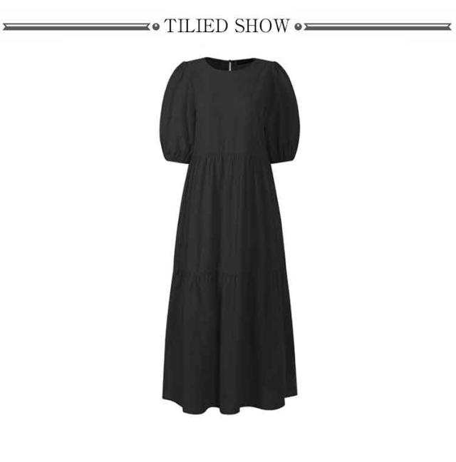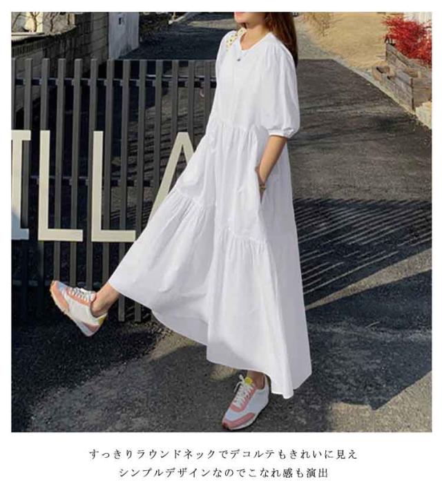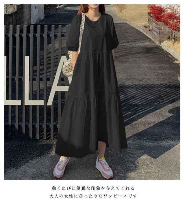 半袖 ワンピース ティアード ロングワンピース tシャツワンピース フレア レディース ドッキングワンピース 春 夏 丸首 Tシャツワンピ クルーネック ゆったり 体型カバー 細見え 着痩せ ホワイト レッド ブラック