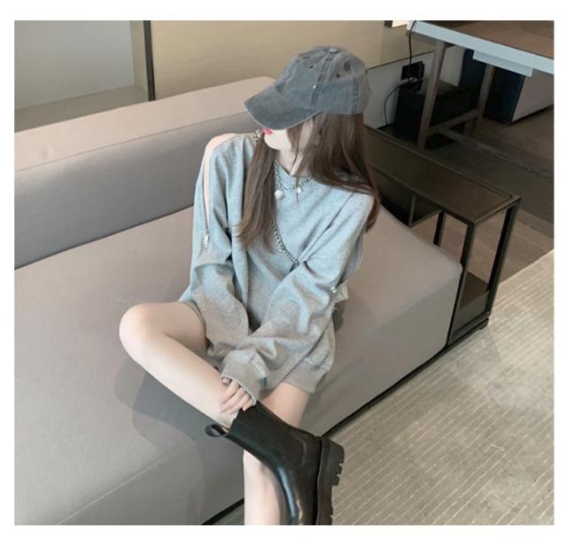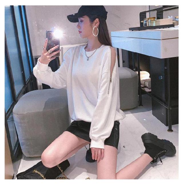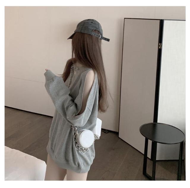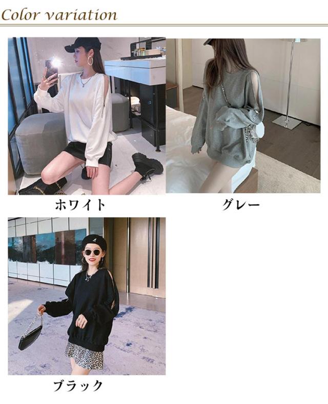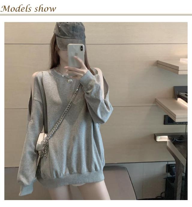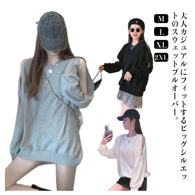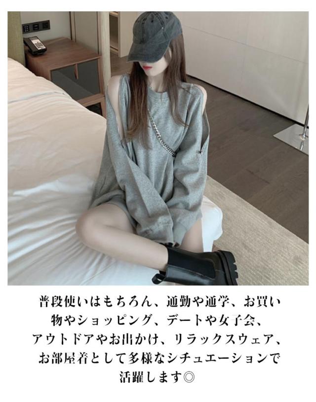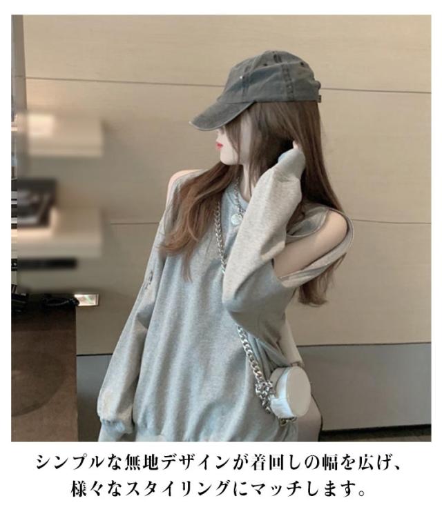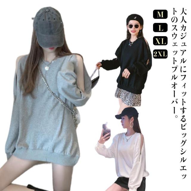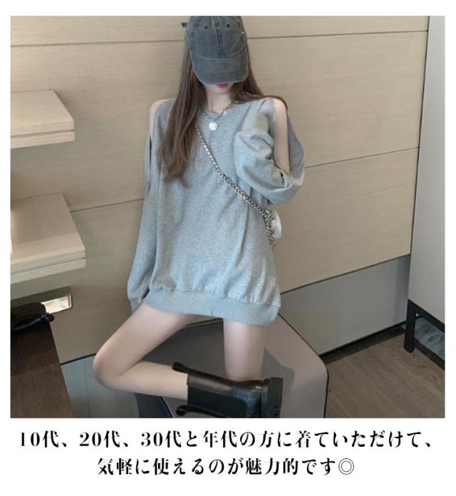 スウェット トレーナー レディース 春秋 薄手 肩見せ 無地 ドロップショルダー 長袖 ワイドシルエット トップス カットソー 韓国風 ゆったり クルーネック ロング おしゃれ シンプル 部屋着 お出かけ 大人カジュアル