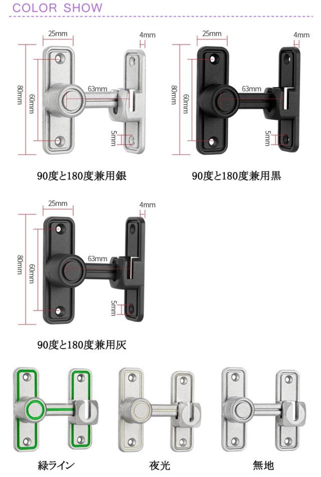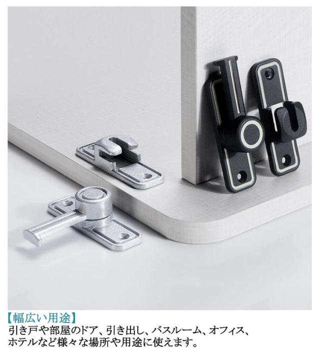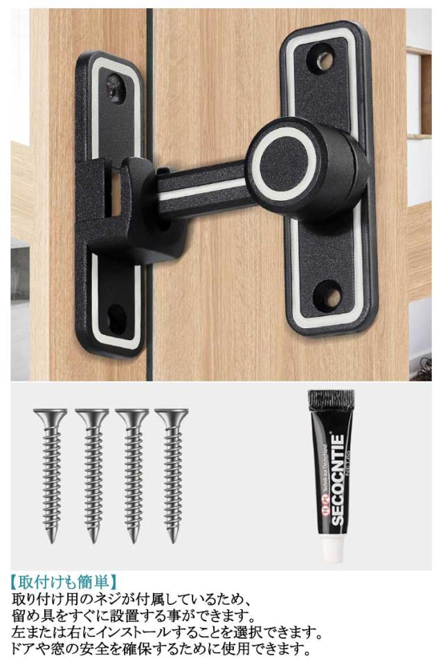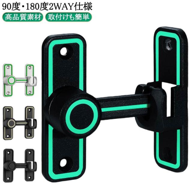 引き戸 鍵 後付け ドアロック 90度/180度 兼用 取り付け簡単 穴あけ不要 ドアバックル 亜鉛合金 ドア留め金ロック 後付け 回転式 フリップラッチロック 夜光 スライディングドア 引き戸 鍵 ロック 防犯 部屋 窓 玄関用 送料無料