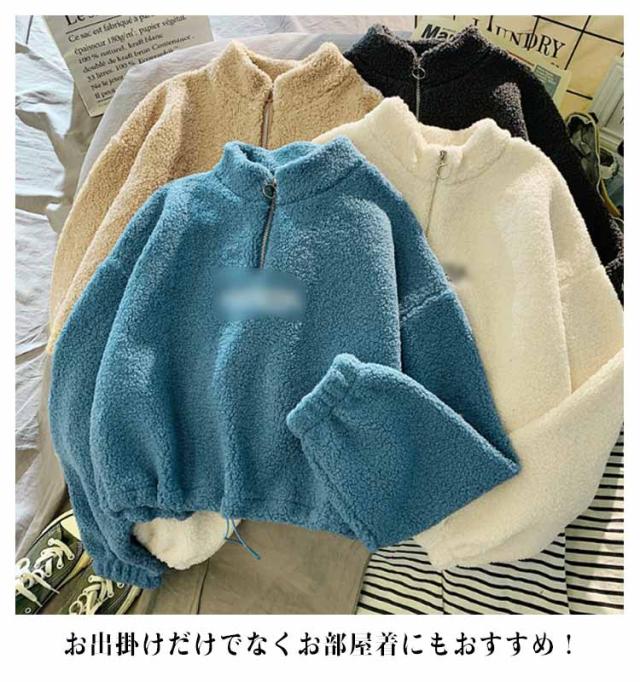 かわいい トレーナー カジュアル 冬 長袖 秋 ボア ハーフジップ レディース 春 もこもこ 暖かい ゆったり 防寒 トップス プルオーバー ショート丈 ルームウェア お出かけ 重ね着 10代 20代 30代 40代 韓国ファッション