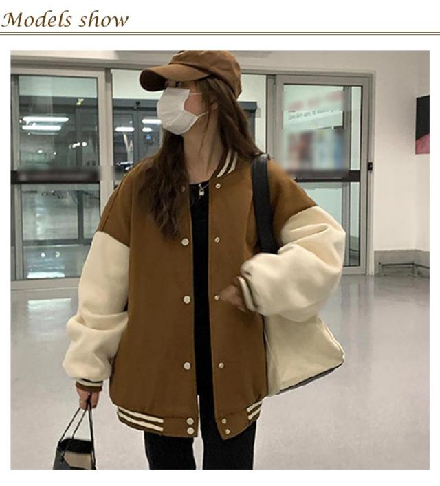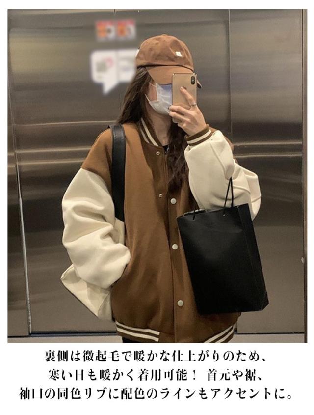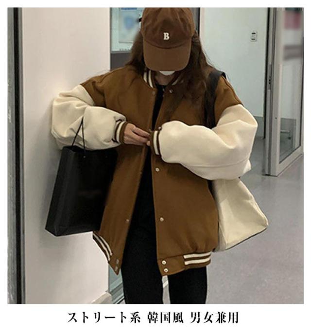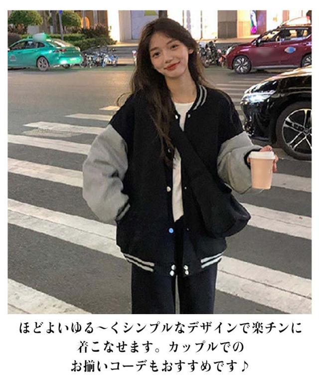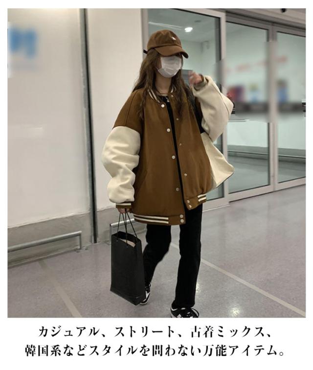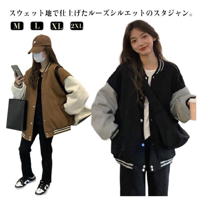 大きいサイズ ブルゾン スタジャン レディース 20代 おしゃれ 秋 冬 ジャンパー ドロップショルダー 春 スタジャン 学生 大人 かわいい 韓国風 カジュアル ジャケット 10代 長袖トップス 30代 男女兼用 ユニセックス スポーツ