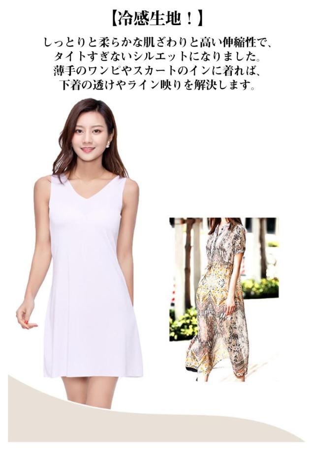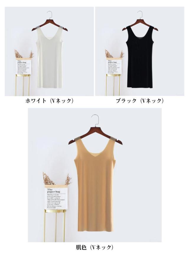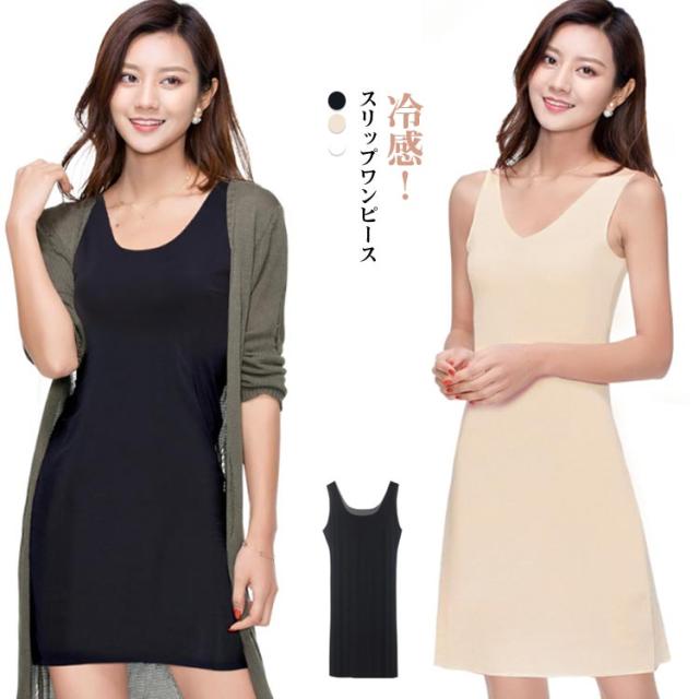 Vネック タンクワンピ シンプル クルーネック 春夏 レディース ひんやり 涼しい アイスシルク スリップ 透け防止 ペチコート ワンピース 春 タンクワンピース タンクワンピース 柔らかい インナー カジュアル タンクワンピ タンクトップ