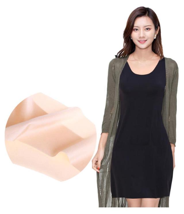| 冷感!スリップワンピース 【冷感生地!】接触冷感材質を採用して、水や汗で濡れると気化熱の作用により冷却効果があります。そんなジメジメ暑い日に涼しさをもたらす 【まとわりつき、透け防止】しっとりと柔らかな肌ざわりと高い伸縮性で、タイトすぎないシルエットになりました。薄手のワンピやスカートのインに着れば、下着の透けやライン映りを解決します。 とてもシンプルで無地なキャミワンピースです。ストレッチよく、快適なフィット感、体を優しくカバーします。 | |