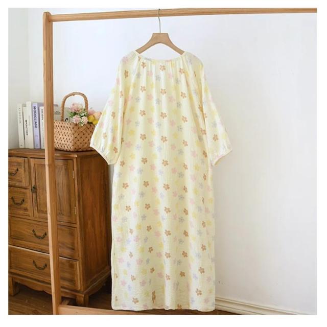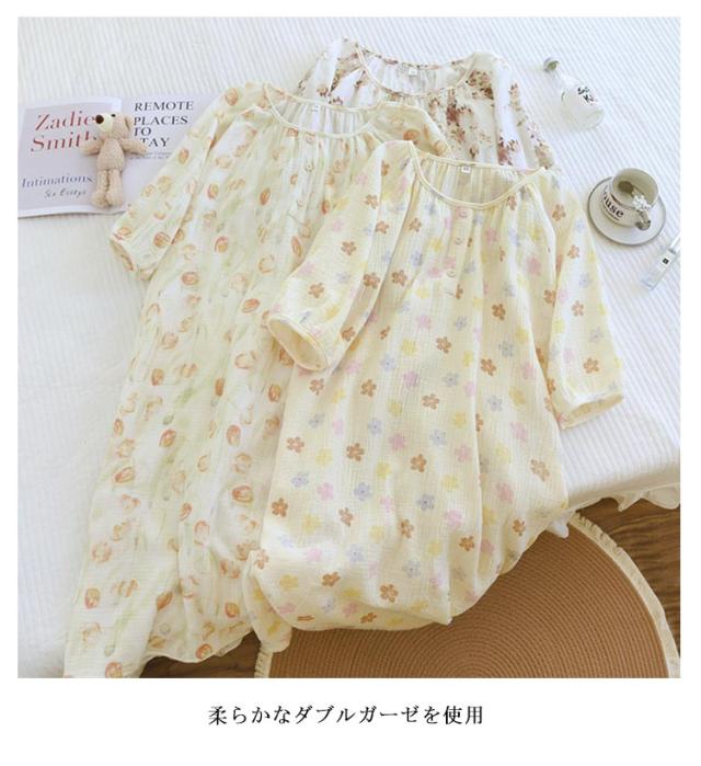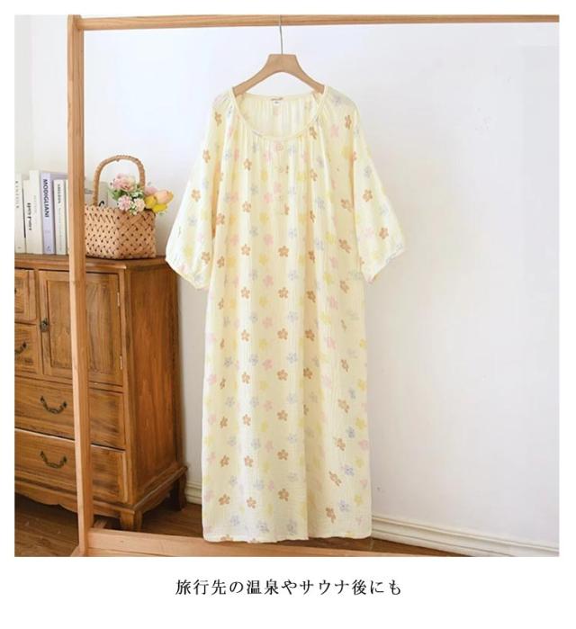 湯上がりガーゼワンピース ダブルガーゼ 湯上がりワンピース 袖あり ガーゼ ルームウェア レディース パジャマ ルームワンピース 綿 コットン ゆったり リラックス ウェア ロング丈 吸水 お風呂上がり
