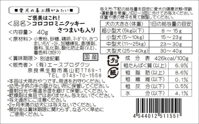 エースプロダクツ コロコロミニクッキーさつまいも入り 40g