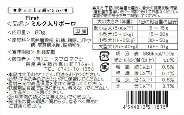 エースプロダクツ ミルク入りボーロ 80g