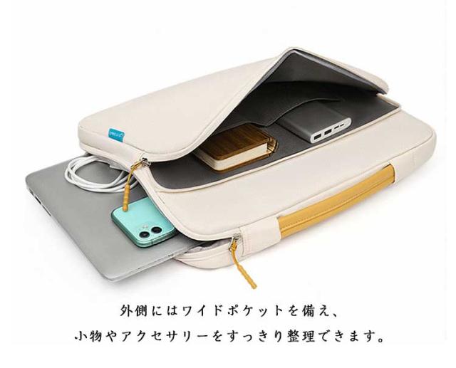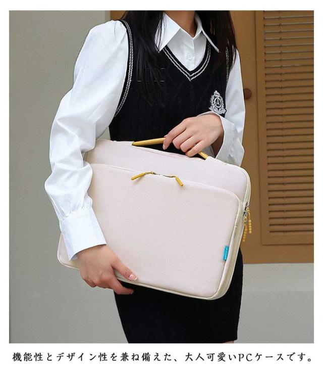 | 軽量でタブレットやノートPCに持ち運びに便利なノートPCケース。 外側にはワイドポケットを備え、小物やアクセサリーをすっきり整理できます。 バッグ内部には緩衝材がしっかり入っており、大切なPCを優しく保護。 ダブルファスナーで開閉がスムーズで、忙しい毎日でもストレスなく使えます。柔らかい持ち手は手に優しく、長時間の持ち運びでも快適。 通勤や通学時の急な雨でも慌てない撥水加工。うっかり飲み物をこぼしてしまっても、サッと拭き取れて安心です。 キャリー通しベルト付きで出張や旅行時の移動も快適です。 シンプルで無駄のない洗練されたデザインの為、ビジネスやカジュアルなどどのようなスタイルにもマッチ。 機能性とデザイン性を兼ね備えた、大人可愛いPCケースです。 | |