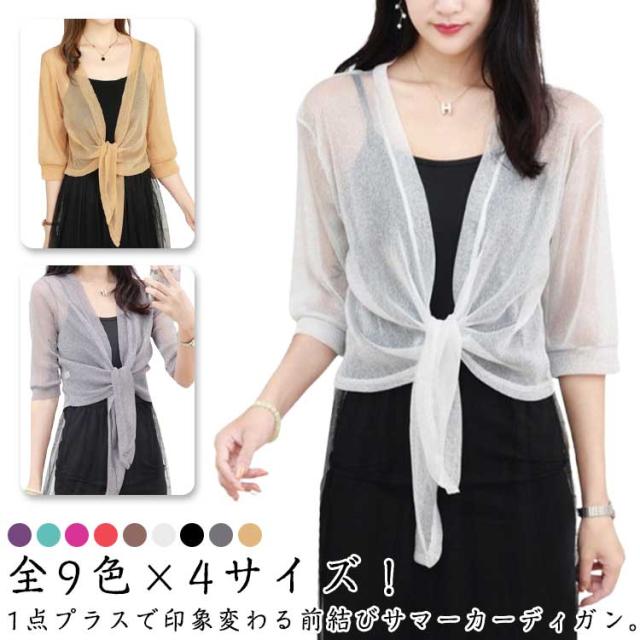全9色×5サイズ 5分袖 五分袖 レディース 春夏 カーディガン ボレロ 羽織り 前リボン結び サマー ゆったり 全9色×5サイズ 春 無地 シンプル サマーカーディガン 夏 冷房?策 きれいめ ショート丈 かわいい カジュアル 透け感 日焼け防止 おしゃれ 可愛い 通勤