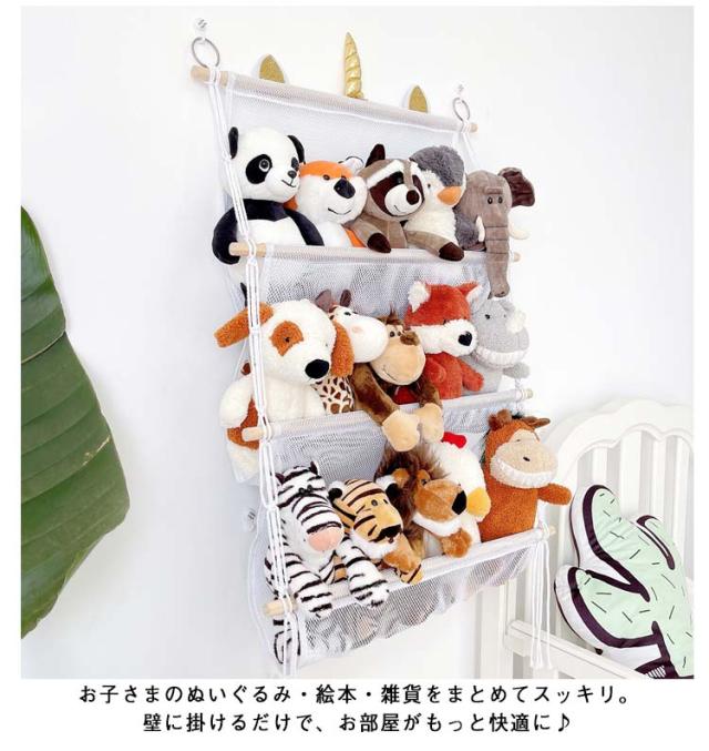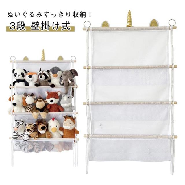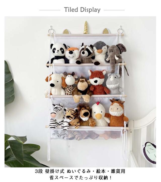 | ぬいぐるみすっきり収納! 3段 壁掛け式 ぬいぐるみ・絵本・雑貨用 省スペースでたっぷり収納! お子さまのぬいぐるみ・絵本・雑貨をまとめてスッキリ。壁に掛けるだけで、お部屋がもっと快適に♪ ぬいぐるみ/絵本/おむつ/おもちゃ/小物類の整理整頓に最適 | |