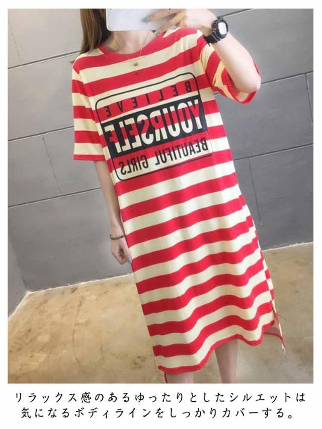 通学 レディース Tシャツ 半袖 おしゃれ トップス ロングTシャツ ロングTシャツワンピース ワンピースTシャツ ワンピース ロンT インナー カットソー ルームウェア カジュアル 通勤 Tシャツ 部屋着 体型カバー ゆったり ミディアム 膝下 大きいサイズ プリント 無地