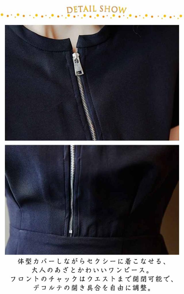 | 一枚で大人女性のこなれ感を放つ。 体型カバーしながらセクシーに着こなせる、大人のあざとかわいいワンピース。 フロントのチャックはウエストまで開閉可能で、デコルテの開き具合を自由に調整。 選べるな3カラー展開が嬉しい。 スカート部分はふんわりフレアになっているため、ヒップやお腹周りも自然にカバーし、スタイルアップ効果抜群です。 シンプルなデザインだからこそ、小物やアクセサリー次第で様々なコーディネートを楽しめます。 一枚だけでも、アウターを羽織ってもコーディできるアイテムです。 | |
