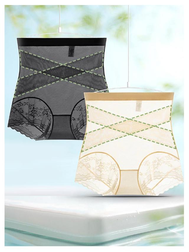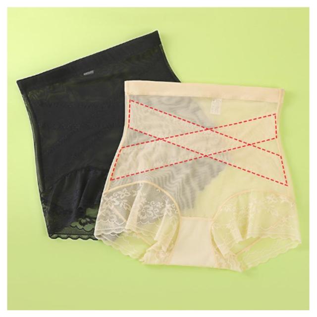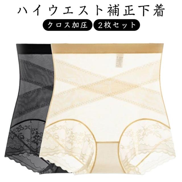 2枚セット 薄手 補正下着 冷感 ハイウエストショーツ レース 十字網状デザイン 2枚セット 無地 お腹引き締め シンプル クロス加圧ハイウエスト補正下着 ヒップアップ レディース 美尻 シームレスデザイン ガードル ストレッチ ヒップアップ 通気