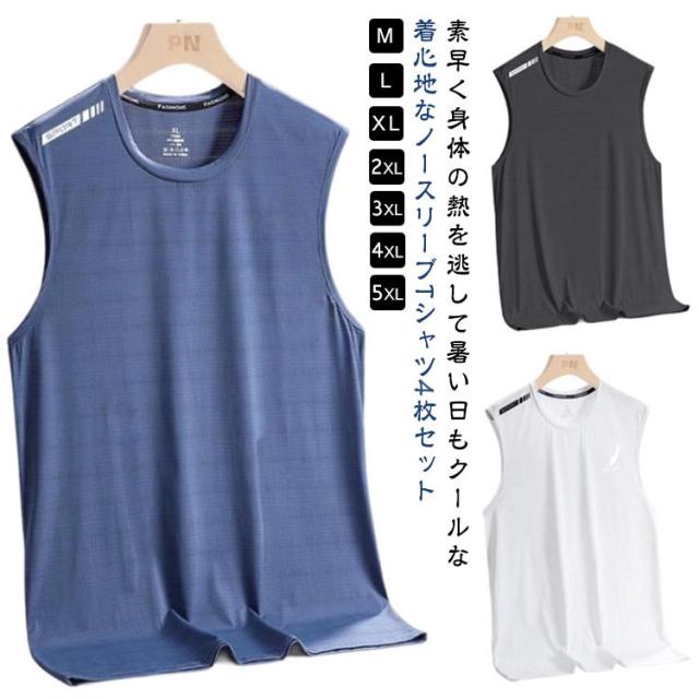 トップス ノースリーブ タンクトップ メンズ スポーツウェア 運動着 薄手 夏 4枚セット ドライ 夏服 涼しい 袖なしTシャツ 無地 4枚セット 吸汗速乾 接触冷感 フィットネス ジム 大きいサイズ メッシュ ランニング トレーニングウェア 筋トレ 運動会 体育祭 作業着