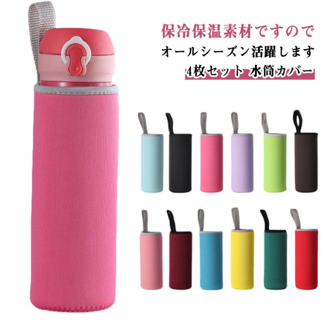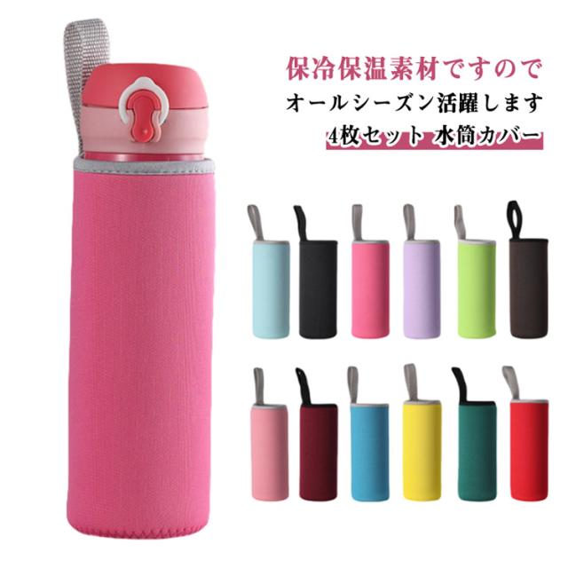 4枚セット 水筒カバー ボトルカバー ペットボトルカバー ホルダー ケース 保冷 保温 手持ち 550ml マイボトル 水筒ポーチ 持ち運び シンプル おしゃれ カジュアル 無地 学校 通勤 通学 レジャー オフィス お出かけ