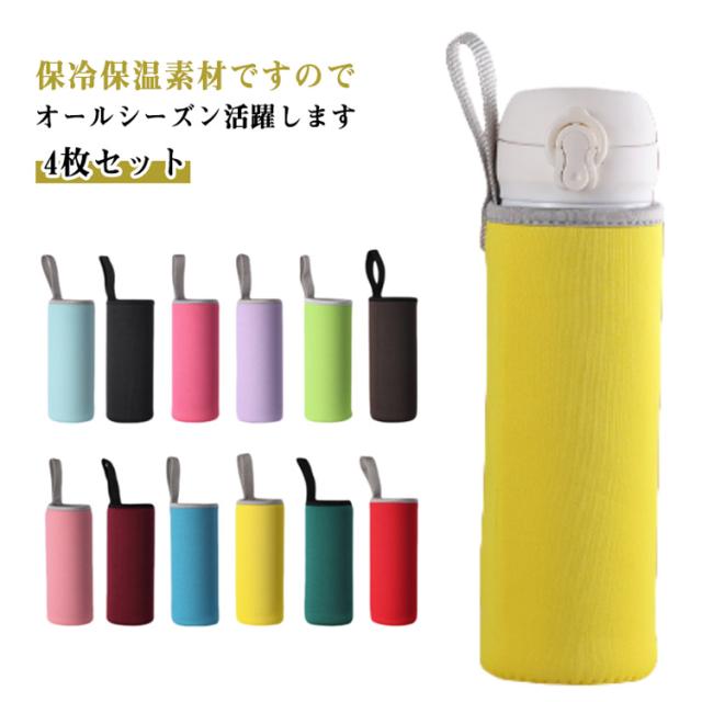 4枚セット 水筒カバー ボトルカバー ペットボトルカバー ホルダー ケース 保冷 保温 手持ち 420ml マイボトル 水筒ポーチ 持ち運び シンプル おしゃれ カジュアル 無地 学校 通勤 通学 レジャー オフィス お出かけ