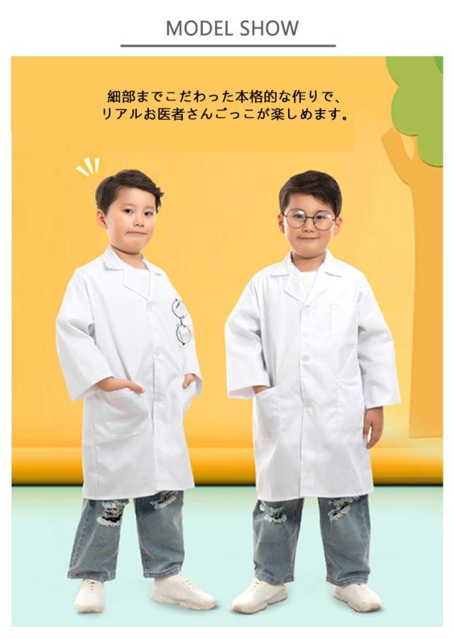 | 110-150cm!憧れのお医者さんになれる!サッと羽織るだけで本物のお医者さんみたいになれちゃう!細部までこだわった本格的な作りで、リアルお医者さんごっこが楽しめます。 上質なコットン素材を使用し、蒸れにくく着心地も抜群です。シンプルゆったりデザインなので、激しく動き回っても楽々♪丈夫で長くお使いいただけます。 お子様でも簡単に着脱できる前ボタンタイプ。首周りは開放的でゆとりがあるので、長時間着用していてもお子様も快適に過ごせます。 男の子も女の子も着用いただけます。サイズが豊富なので、お子様のジャストサイズを選べます。 | |