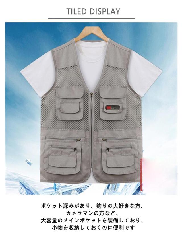 | 10ポケット付き!撮影、釣り、キャンプは勿論、旅行や休日も気軽に着用できるアウトドアベストです。 ポケット深みがあり、釣りの大好きな方、カメラマンの方など、大容量のメインポケットを装備しており、小物を収納しておくのに便利です ウオーキング、登山、撮影、釣り、フィッシング、作業、キャンプ、遠足、旅行などの幅広いなどのシーンで利用することができます。機能性にもしっかりこだわった一枚に仕上げています 登山、ランニング、キャンプ、サイクリング、ゴルフなど幅広い春夏秋野外活動にお勧め、お誕生日などのギフトとしても最適です。 | |