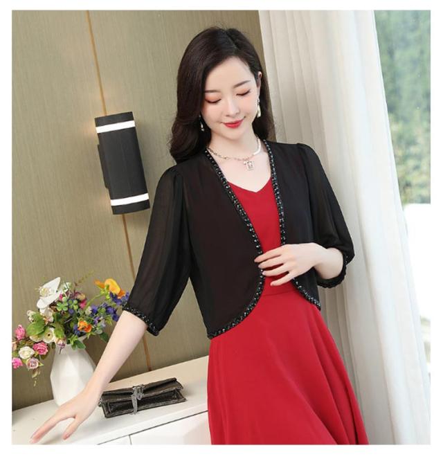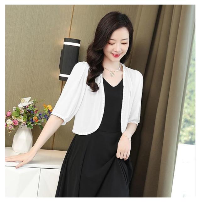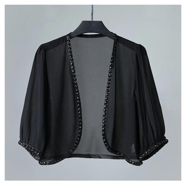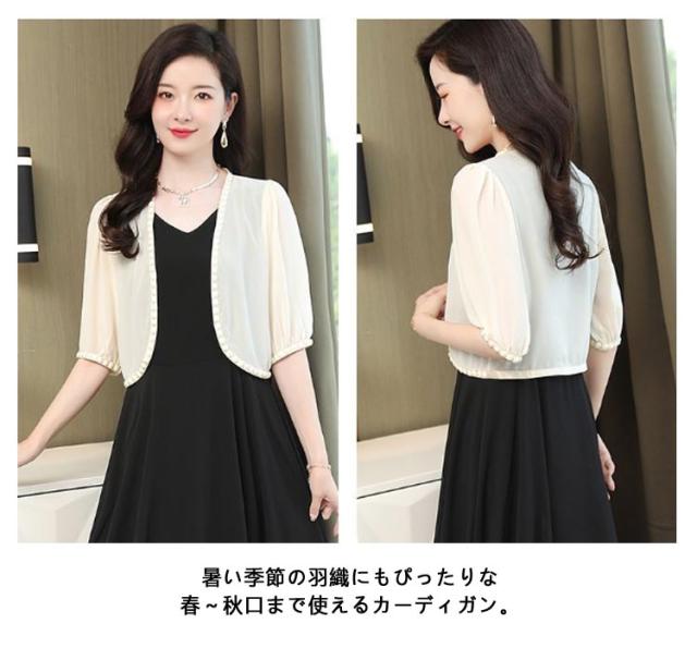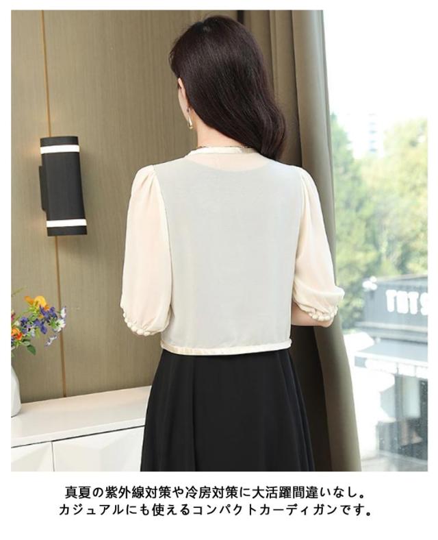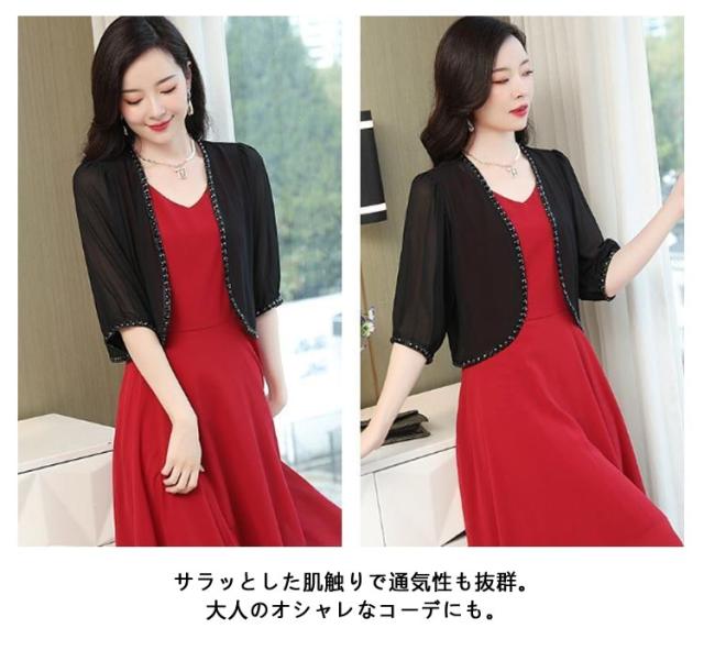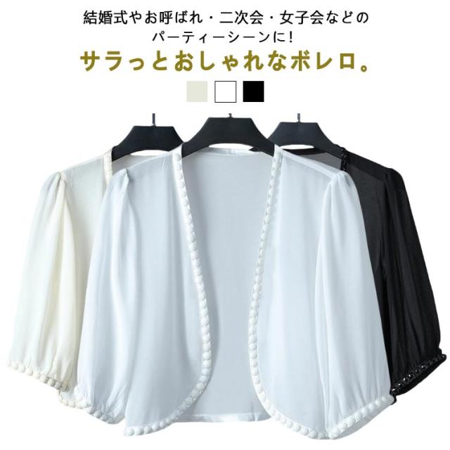 パーティーボレロ レディース カーディガン ワンピース 半袖 五分袖 シフォン 結婚式ボレロ レディースショール 結婚式 フォーマル ボレロ 袖あり ドレス お呼ばれボレロ ジャケット パーティー 黒 大きいサイズ 20代 30代 40代 50代