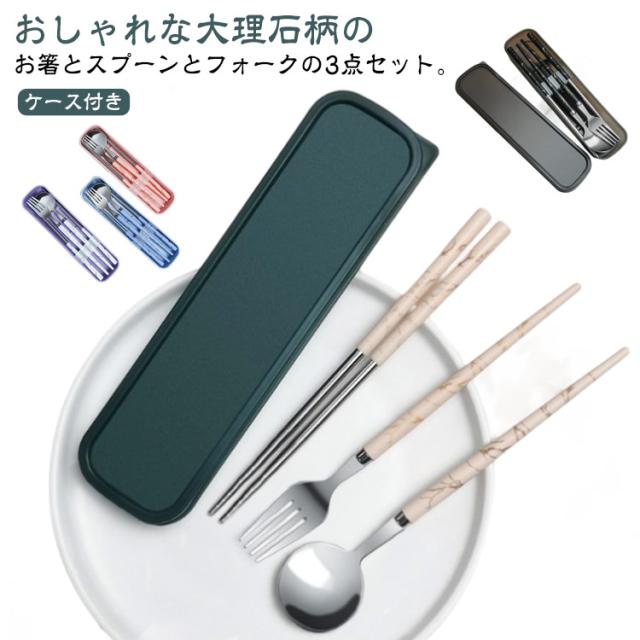 コンビセット 北欧食器 大理石柄 お弁当 フォーク おしゃれ 3点セット お箸 セット 韓国風 食器 ケース付き 固定 ステンレス カトラリー 北欧 スプーン 軽量 軽い 通学 コンパクト 携帯便利 カトラリーセット 通勤 カトラリーセット キャンプ 大人 学生 ペア 食洗機対応