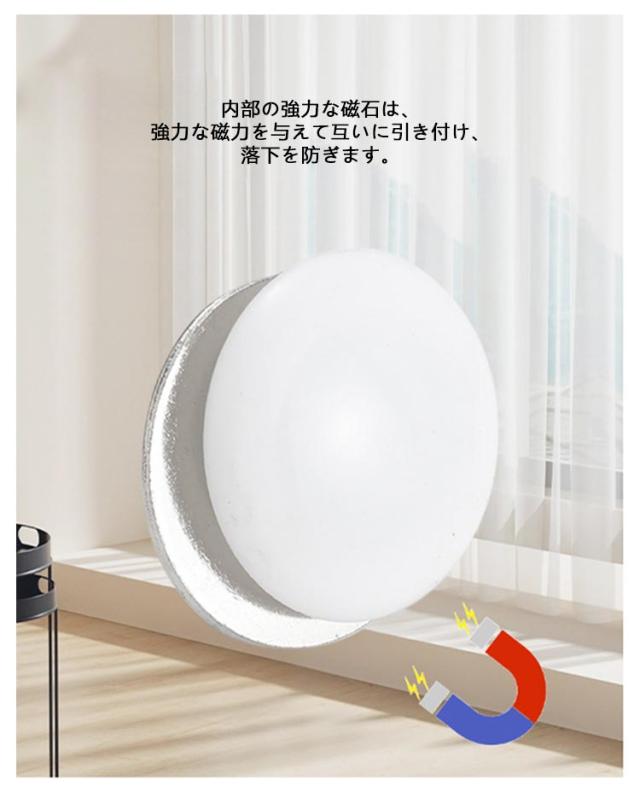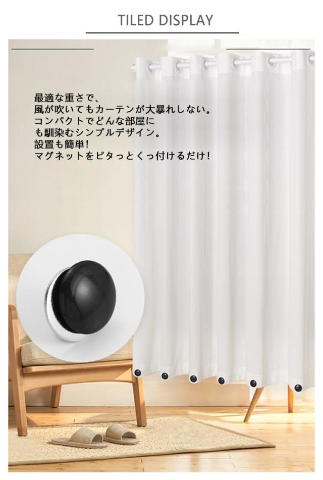 | マグネット式だから簡単に後付けできるカーテンの重し。最適な重さで、風が吹いてもカーテンが大暴れしない。コンパクトでどんな部屋にも馴染むシンプルデザイン。設置も簡単!マグネットをピタっとくっ付けるだけ! 内部の強力な磁石は、強力な磁力を与えて互いに引き付け、落下を防ぎます。 カーテンウェイトに作られた超強力磁石がくっつき、布/プラスチックカーテン、ダブルカーテンでもスライドしにくい。 防水性があり、落下せず、長時間使用できます。 ポータブルで再利用可能:簡単に着脱でき、最適な使用が可能、ホテル、リゾート、モーテルで使用できる優れた携帯性。 お手入れは簡単。シャワーバスに最適。 バスタブの高さより上に取り付けるだけで、道具は必要ありません。 カーテンを所定の位置に固定してシャワースペースを増やしましょう。 | |