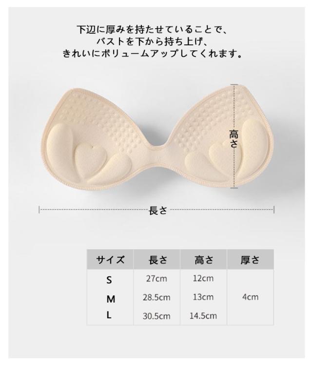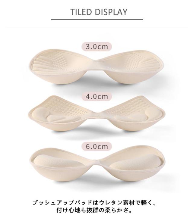 | バストを下辺から持ち上げ、きれいにボリュームアップ! プッシュアップパッドはウレタン素材で軽く、付け心地も抜群の柔らかさ。 弾力性のあるクッションで、バストにもしっかりとフィット! 下辺に厚みを持たせていることで、バストを下から持ち上げ、きれいにボリュームアップしてくれます。 デコルテにボリュームを出したい方や、バストシルエットを美しく見せたい方にもおすすめです。 | |