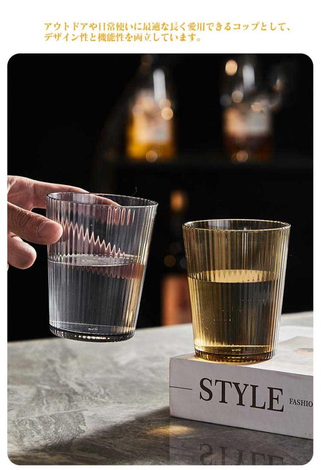 | 割れないコップ。【4個セット】【ストライプ模様】【280cc】 豊かなカラーバリエーションから、お好みのアイテムをお選びいただけます。 トライタン素材を使用しているので、ガラスと比べても見劣りしないクリアな輝きと光沢感があり、曲げや耐久性が強いのが特徴です。 落としても割れにくく、フリーなのでお年寄りや子供にもおすすめ。 アウトドアや日常使いに最適な長く愛用できるコップとして、デザイン性と機能性を両立しています。 収納時は重ねてスタッキング可能です | |
