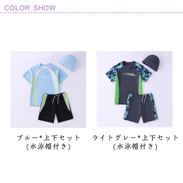 | 小学生にぴったり!元気な男の子のための上下セット水着 半袖トップスとショートパンツのセパレート水着 着脱も簡単で、ひとりでも楽にお着替えできます。 スイムキャップ付きでさらに便利♪ 同色デザインのスイムキャップがセットになっており、トータルコーデもばっちり。髪をまとめやすく、プール授業やスイミング教室にも◎ 吸汗速乾の高機能素材でさらっと快適!暑い季節でも蒸れにくく、長時間の使用でも不快感なし。 豊富なサイズ展開(6歳〜12歳対応) 成長期のお子さまにもフィットするよう設計された安心のサイズ感。11kg〜45kgのお子さまに幅広く対応。 どんなシーンでも活躍する万能セット プール、水遊び、スイミングスクール、海水浴、温泉旅行など、幅広いシーンに対応可能な実用性の高い一着。 | |