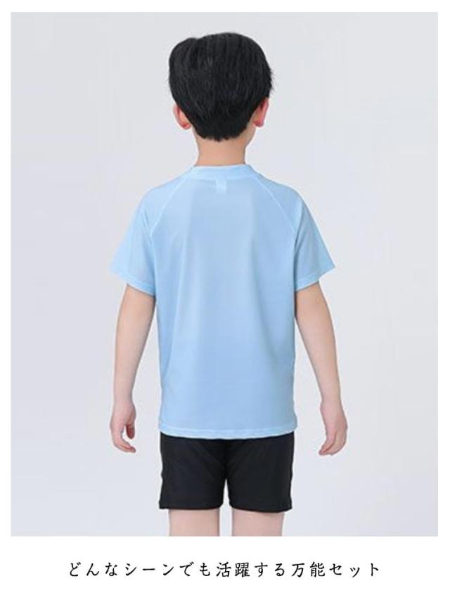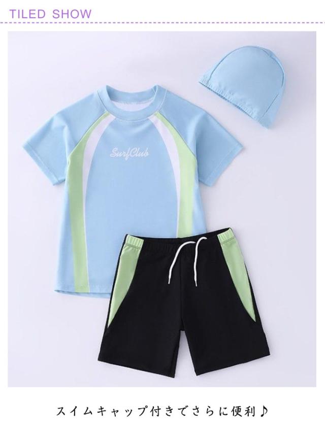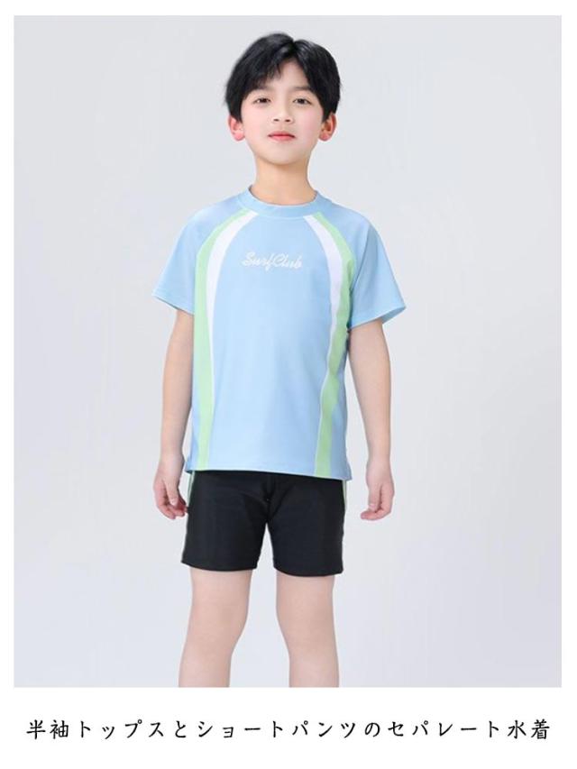 セパレート水着 上下セット スイムキャップ付き 男の子 キッズ 小学生 子供用 スイムウェア 半袖 動きやすい プール用水着 海水浴 夏用 スポーツ水着 速乾 通気性 紫外線対策 6歳-12歳 フィット感 シンプル