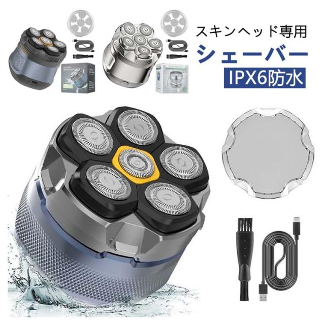 スキンヘッド用シェーバー 6Dスキンヘッド シェーバー マグネット着脱式 ハゲ用シェーバー 坊主用シェーバー 頭髪シェーバー パワーフル 坊主頭 髭剃り 男性用 IPX6防水 スキンヘッド用バリカン メンズシェーバー 回転式 LEDディスプレイ TYPE-C to USB 充電式