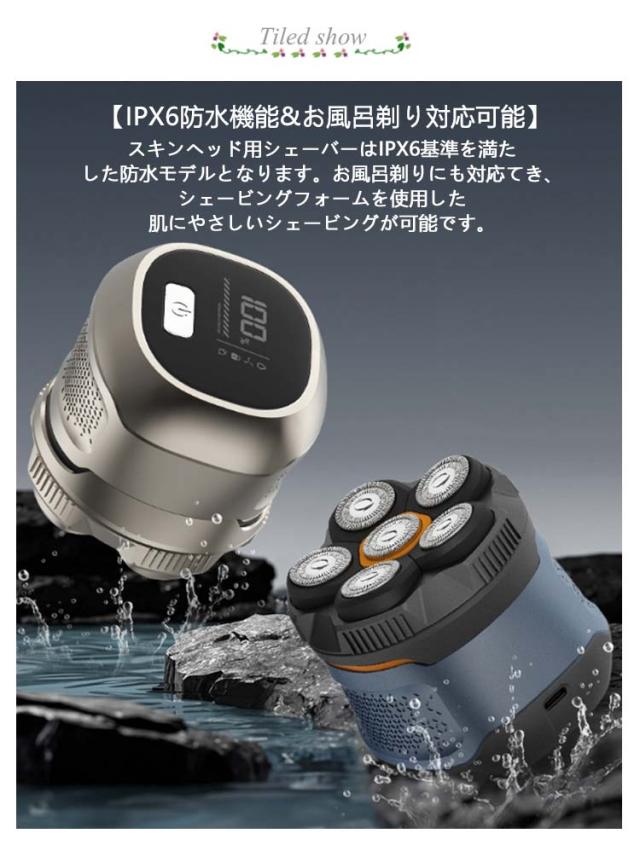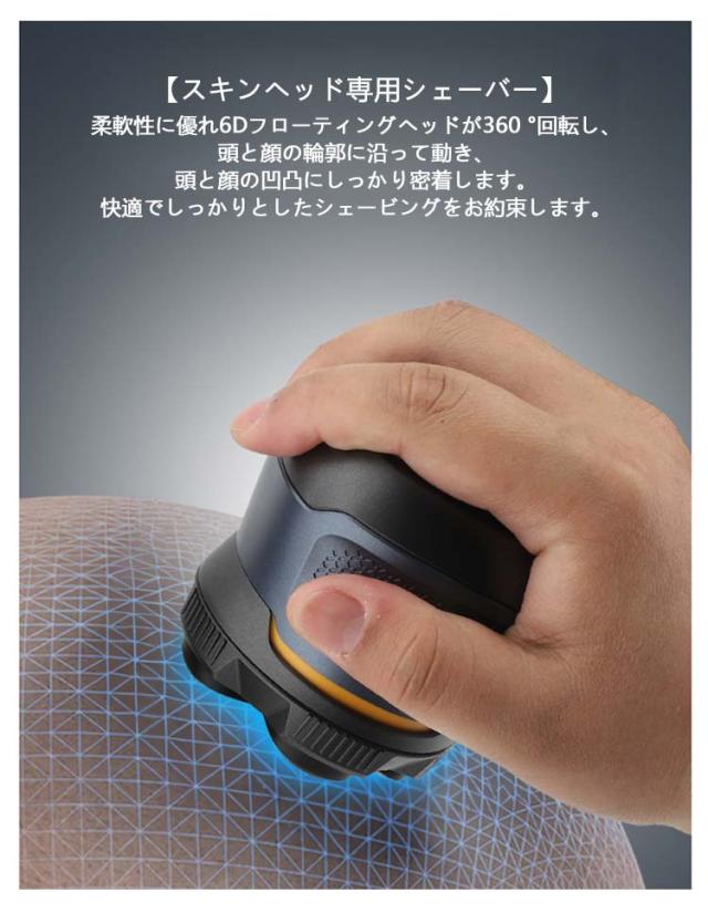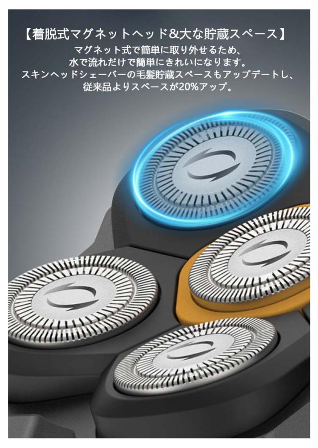 | 【スキンヘッド専用シェーバー】 柔軟性に優れ6Dフローティングヘッドが360 °回転し、頭と顔の輪郭に沿って動き、頭と顔の凹凸にしっかり密着します。快適でしっかりとしたシェービングをお約束します。ダブルループ外刃ネットと99枚鋭利なパワーカット刃の自動研磨システムを搭載だから、強くなパワーで爽快なスキンヘッドシェービングを実現! 【着脱式マグネットヘッド&大な貯蔵スペース】 マグネット式で簡単に取り外せるため、水で流れだけで簡単にきれいになります。スキンヘッドシェーバーの毛髪貯蔵スペースもアップデートし、従来品よりスペースが20%アップ。頻繁的に毛髪の清潔は必要ない、毛髪を詰まることを防ぎます。 【IPX6防水機能&お風呂剃り対応可能】 スキンヘッド用シェーバーはIPX6基準を満たした防水モデルとなります。お風呂剃りにも対応てき、シェービングフォームを使用した肌にやさしいシェービングが可能です。このスキンヘッドシェーバーは髭が硬い人と敏感肌の方におすすめ。※水や液体に浸さないでください。 【TYPE-C急速充電】 作動時間もっと長くなる パソコンUSB端子/USB電源アダプター/ 1000mAhバッテリー容量+連続作動時間約120分 ※「アップル (Apple)」 製品の充電ケーブルと電源アダプターとPD協議の充電アダプターとCtoCの充電ケーブルは対応できません | |
