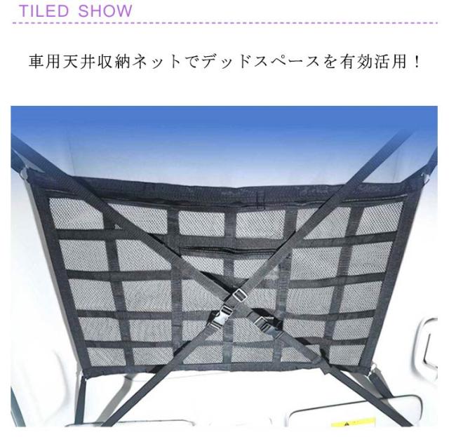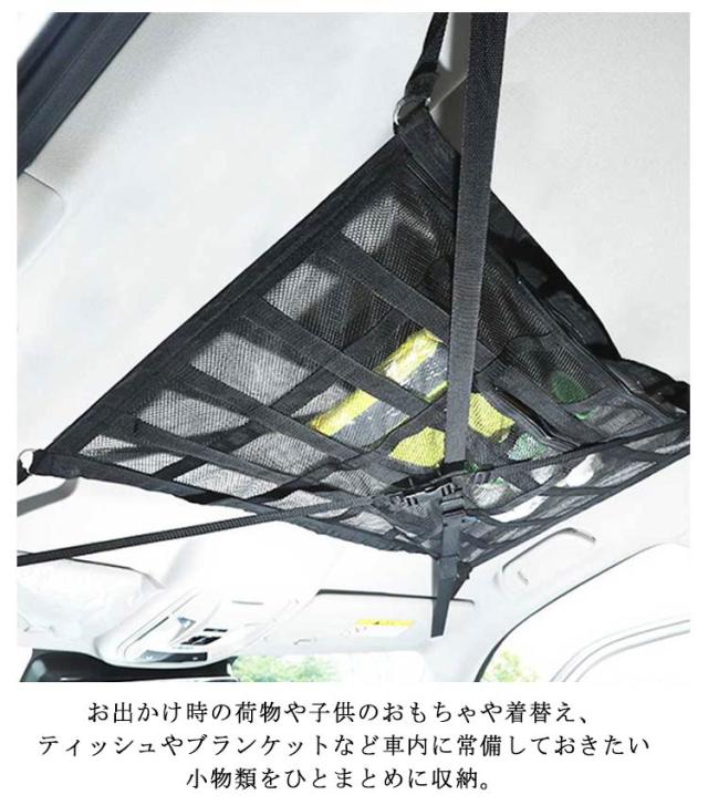 | 【車天井用収納ネット】車のデッドスペースを有効活用!天井収納 簡単取付 選べる3サイズ 車用天井収納ネットでデッドスペースを有効活用! 車の広さに合わせて選べる2サイズをご用意。 お出かけ時の荷物や子供のおもちゃや着替え、 ティッシュやブランケットなど車内に常備しておきたい 小物類をひとまとめに収納。 | |