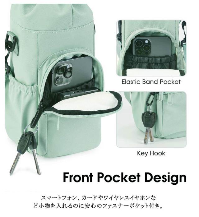 | 20/24/32/40oz対応 ハンドストラップとショルダーストラップ付きの2WAY仕様 内側にはアルミ加工を施し保冷・保温効果も◎ スマートフォン、カードやワイヤレスイヤホンなど小物を入れるのに安心のファスナーポケット付き。 両サイドはオープンポケットあり、鍵フックストラップも完備し、充実したポケットで小物の収納に便利。 デイリー使いはもちろん、スポーツ・アウトドアシーンなど幅広く活躍! | |