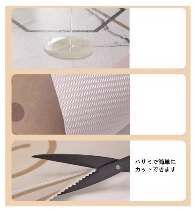 | 防水 抗菌 滑り止め 耐摩耗性 ペットの足腰の負担軽減♪ ペットマット 選べる9サイズ×20柄 自由にカット可能 ・足や腰に優しく、ペットの関節への刺激を緩和します ・エンボス加工で滑り止め効果を発揮 ・毛足が無いマットなのでハウスダストの発生やダニの繁殖を予防します ・ひっかき傷に強くリバーシブルで使用できるので長くお使いいただけます ・サッとひと拭き、すぐにきれいになります ・ハサミで簡単にカットできます ・ベッドや寝具からの飛び降りの際に掛かる関節への衝撃を緩和します 【ペットの足腰の負担を軽減】 ・軽ツルツル滑って危険なフローリングに敷けば、ピタッと吸着して、元気に走りまわれるように! ・ソファーや高いところから飛び降りても、滑らずに安心です。 【高品質PUレザー素材】 ・PUレザーを使用し、防水性と速乾性を兼ね備えているため、ペットのトイレシートとしても最適です。 ・適当な厚さで、ペットの足や腰に優しく、関節への負担を軽減します。 【滑り止め】 ・エンボス加工により滑り止め効果があり、ペットが安心して過ごせます。 【防水・安全・清潔】 ・生活防水でお手入れ・掃除も楽々です。 ・サッとひと拭き、すぐにきれいになります。 ・毛足が無いため、ハウスダストやダニの発生を抑制し、清潔な環境を保ちます。 【うれしい極薄設計!】 ・約3mmと極薄設計なので、つまずいてしまう心配もなく、ドアの開閉や、キャスタ-の移動もスムーズに行えます♪ 【ハサミでかんたんカット!】 ・廊下やお部屋に突き出している柱の周りも、ハサミで簡単にカットできるので、しっかりと敷き詰められます。 ・くり抜いてカラーを変えれば、自分だけのオリジナルマットにも! 【引っかきに強く破れにくい】 もっちりとクッション性があるので爪にやさしく引っかきに強い。 ガリガリしても安心! 引っかきに強い特殊加工をしておりますが、 爪切り直後にはヤスリで滑らかにしていただければマットがさらに長持ちします。 | |