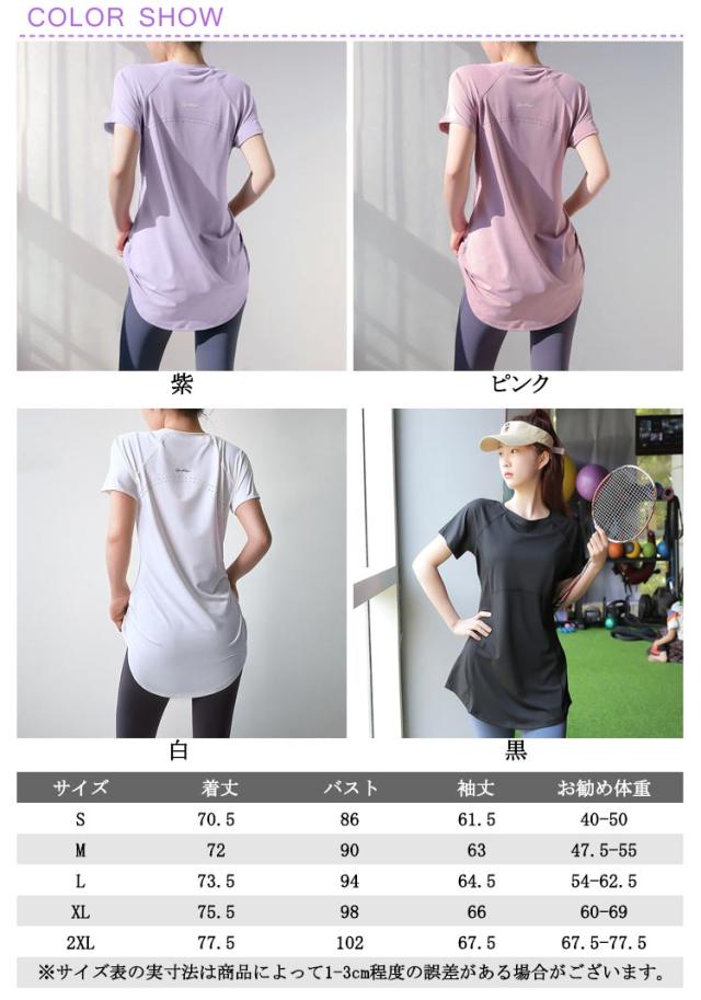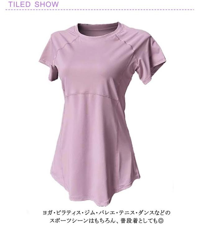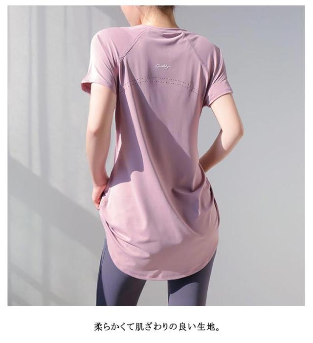 ロング丈 レディース ヨガウェア ヨガトップス ゆったり ウェア ピラティス ヨガウェア トップス おしゃれ 体型カバー速乾 薄手 丈長め 伸縮性 かわいい スポーツ 半袖 ヨガtシャツ スリット フィットネス ジムウェア ホットヨガ ストレッチ ダンス