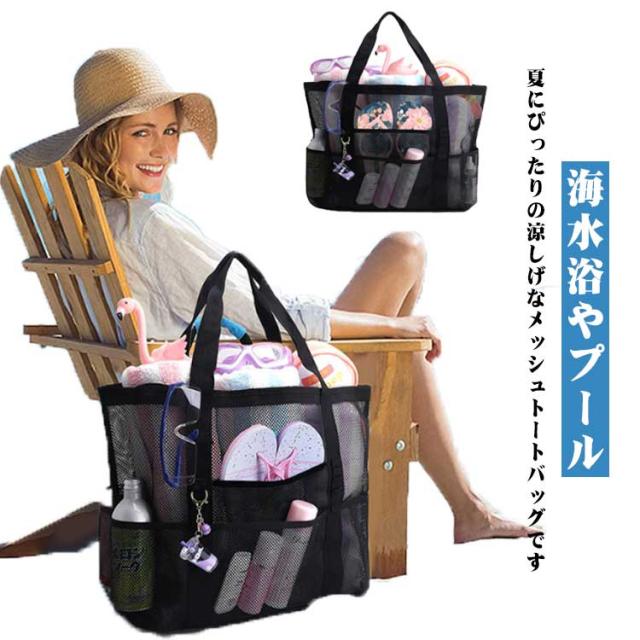 プールバッグ プールバッグ ショルダー 大人 大容量 ビーチ トートバッグ トート メッシュバッグ アウトドア ビーチバッグ メッシュ レジャー まるごトート 防水 レジャーバッグ プールバッグ 仕切り付き バッグ 海水浴 海 軽量 リゾート 海外旅行