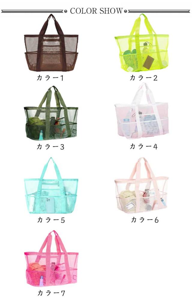 | 海水浴やプール。夏にぴったりの涼しげなメッシュトートバッグです。 大容量かつ軽量で、たくさん入るのはうれしいポイントです ナチュラルで、アンニュイな雰囲気で、持ち歩きのサブバックにもぴったりです 水着や濡れ物を入れても水濡れに強く速乾。さらに洗濯機で洗えます。 小さくたためるから旅行のサブバッグやエコバッグとしても最適。ちょっとしたお出かけもおしゃれにきまります。 | |