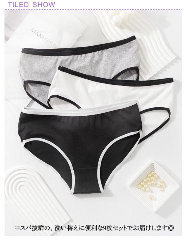 | 9枚組!飽きのこないスタンダードなデザイン。 やわらかくストレッチする生地が肌にフィット。 通気性にも優れているので、汗をかいても快適にお過ごしいただけます。 コスパ抜群の、洗い替えに便利な9枚セットでお届けします◎ とても安いので、旅行用の使い捨て下着としても使える | |