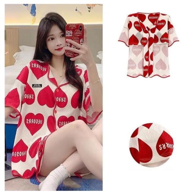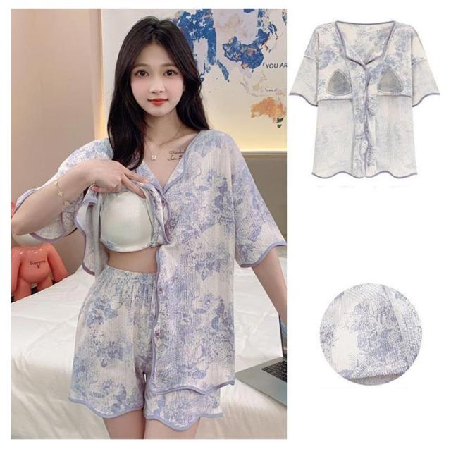 | カップ付き上下セット!前開き前ボタンタイプで着やすいので、授乳や入院などにもおすすめ。 ウエストはゴム仕様なので、たくさん動いてもストレスなく快適に着用いただけます。 おうち時間も可愛く♪夏を涼しく快適に過ごせる着心地抜群なルームウェア。 | |