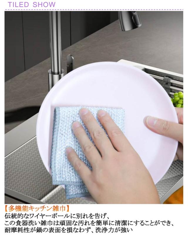 メッシュ クロス 2枚重ね ワイヤーふきん 厚手 20×20cm 強力汚れ落とし ワイヤー食器用雑巾 25枚セット 食器洗い ワイヤーふきん 強力汚れ落とし キッチンタオル 多機能 傷つけない キッチンクロス 食器拭き ノンスクラッチワイヤー 布巾