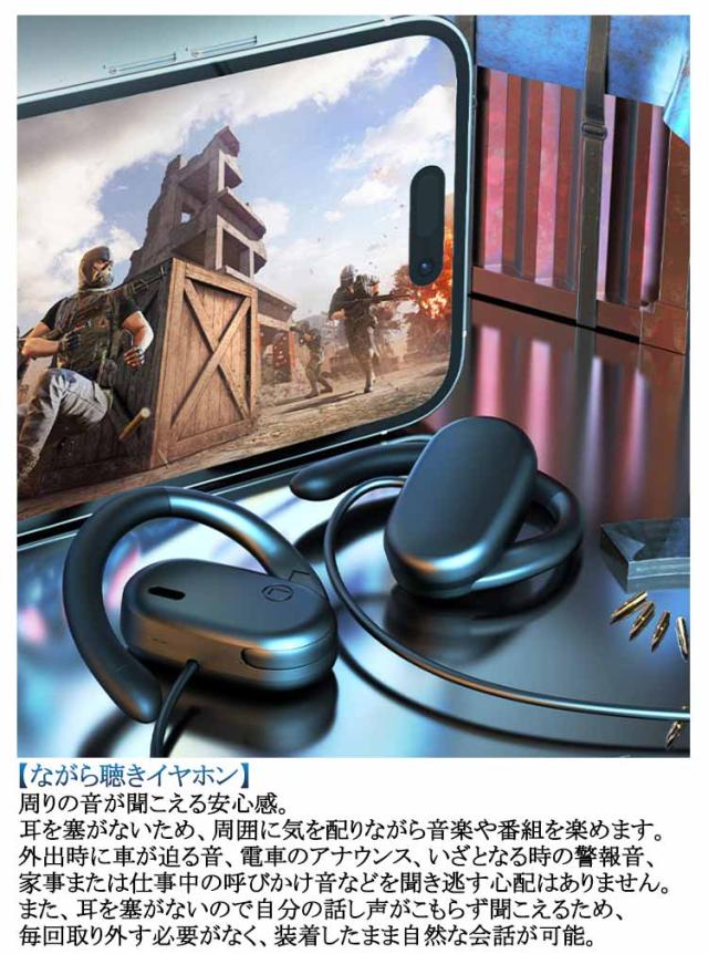 ハンズフリー通話 有線 3.5mm ながら聴きイヤホン イヤホン マイク付きイヤホン ゲーミングイヤホン 開放型 マイク付き 有線 耳掛け式 オープンイヤー イヤホン クリア通話 耳を塞がない 空気伝導イヤホン 音量調整 テレワーク WEB会議