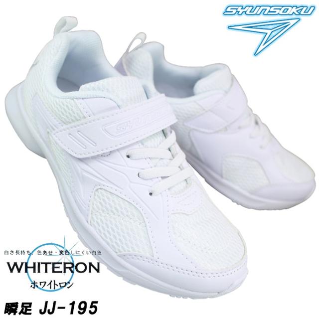 瞬足 しゅんそく JJ-195 白/白 16cm〜26cm キッズ ジュニア 通学スニーカー 白スニーカー 白スクールシューズ 通学靴 白靴 運動靴 SJJ1950 ホワイトロン マジックテープ 面ファスナー ベルクロ 靴 2E アキレス Achilles 瞬足094後継モデル