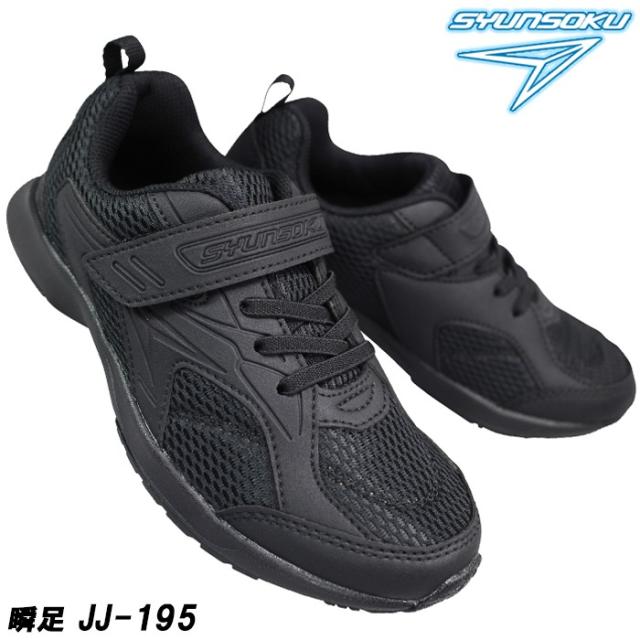 瞬足 しゅんそく JJ-195 黒/黒 16cm〜26cm キッズ ジュニア 通学スニーカー 通学靴 黒靴 運動靴 フォーマルシューズ 冠婚葬祭 靴 SJJ1950 マジックテープ 面ファスナー ベルクロ 靴 2E アキレス Achilles