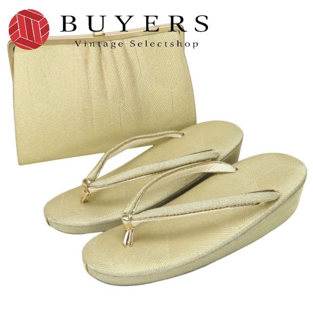 中古 和装バッグ 草履バッグセット 正絹(金銀糸除く) 合成皮革 合成繊維 ゴールド ゴールド金具 和装 呉服 和服 きもの レディース 女性