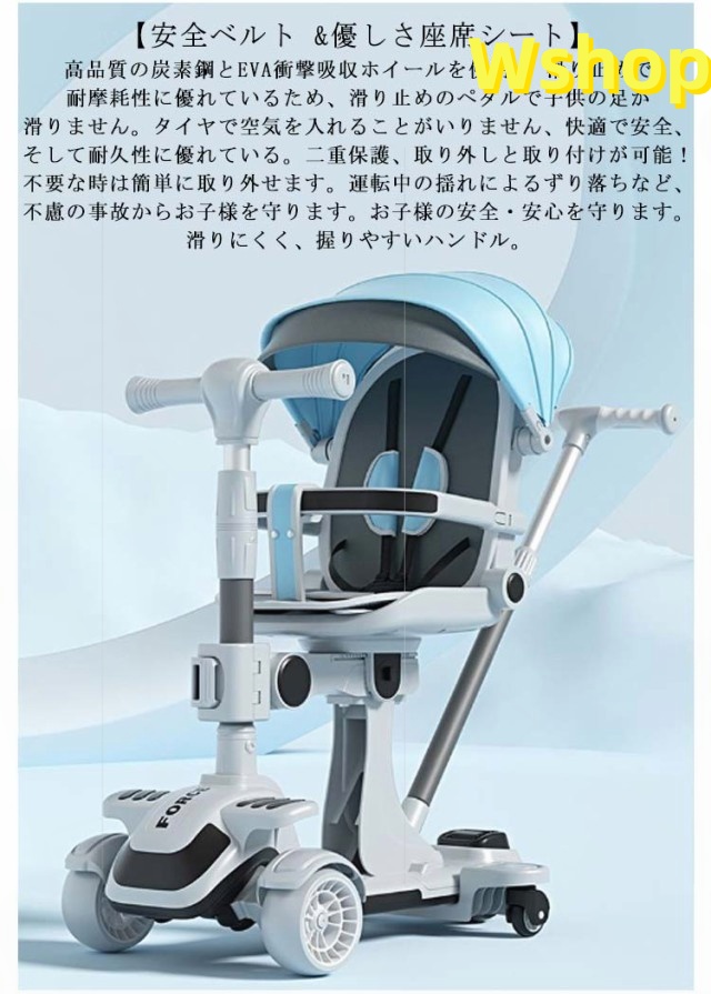 | 【安全ベルト &優しさ座席シート】高品質の炭素鋼とEVA衝撃吸収ホイールを使用。 滑り止めで耐摩耗性に優れているため、滑り止めのペダルで子供の足が滑りません。タイヤで空気を入れることがいりません、快適で安全、そして耐久性に優れている。二重保護、取り外しと取り付けが可能!不要な時は簡単に取り外せます。運転中の揺れによるずり落ちなど、不慮の事故からお子様を守ります。お子様の安全・安心を守ります。滑りにくく、握りやすいハンドル。 【押し棒高さ調節可能 &ペダルの脱着可能】子供用三輪車は脱着可能な押し棒は93cm,89cm,85cm三つの調節できる速度制御に役立ちます。身長に合わせてピッタリ長さを調節できます。三輪車の後部に付いているコントロールバーには進む方向を操作できる舵切り機能付き。ペダルの使用しない場合はサドルの下に保管できます。大人でもちょっと子供でも利用する事ができます。心地よい素材を採用し、ママの操作をもっと安くなります。 【折り畳み・収納便利】三輪車のは通気性優れるリネンから子供の様子を確認することができるのでパパママも安心な安全仕様。工具不要で女性一人でも簡単に組み立てることができます。ママも簡単に持ち運びが可能です。丈夫で安全な炭素鋼フレームを使用しており、安定した構造と強い耐荷重を実現しています。三輪車は折りたたむことができ、スペースを節約できる。 | |